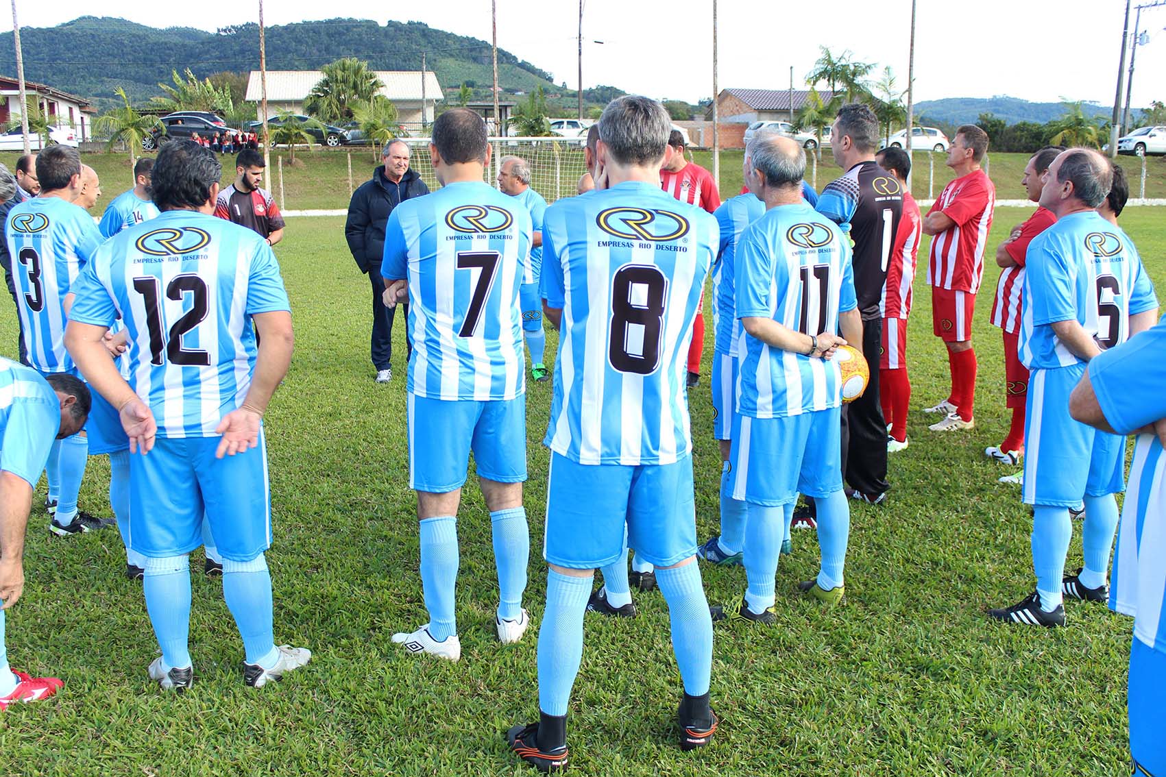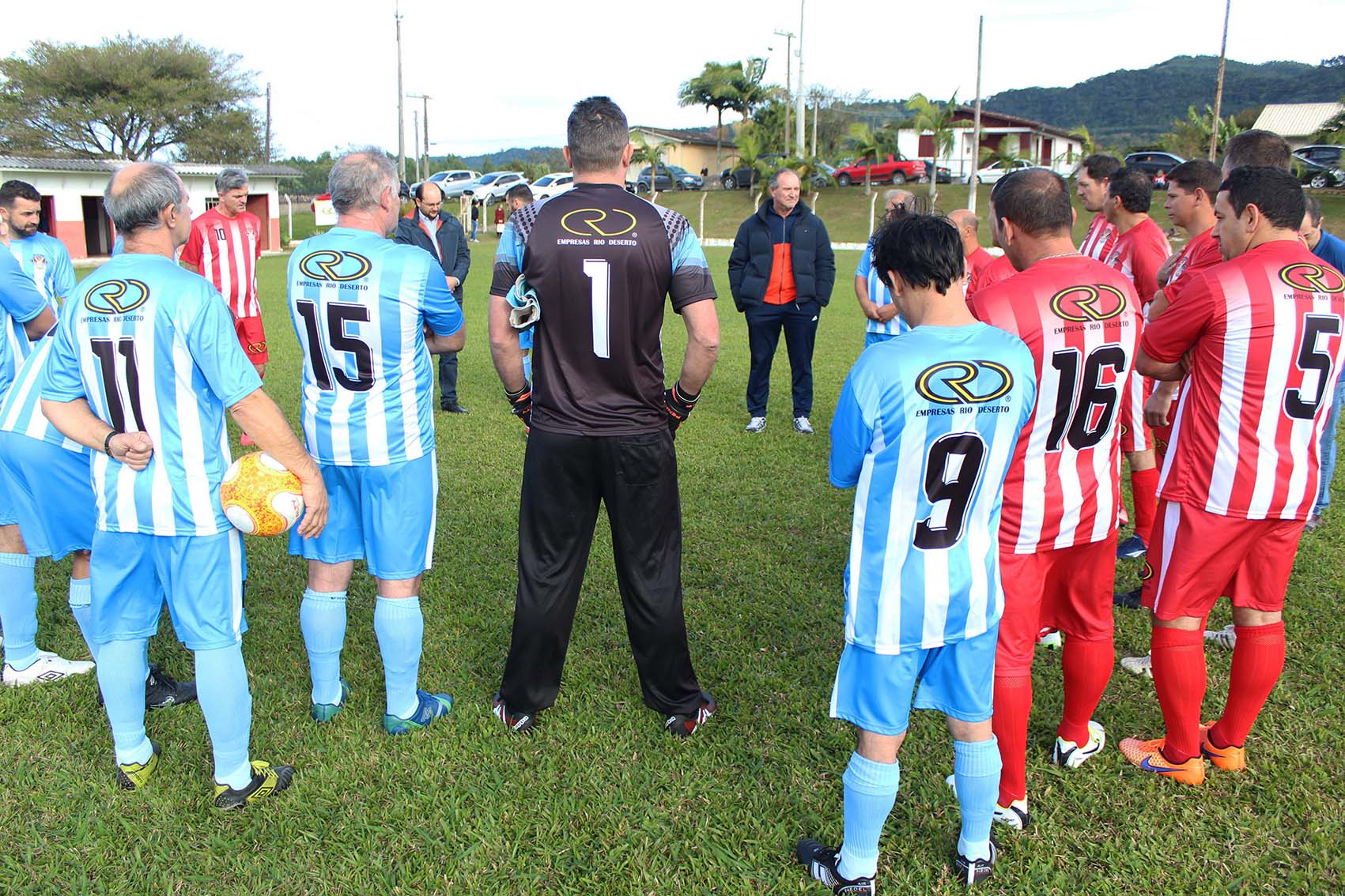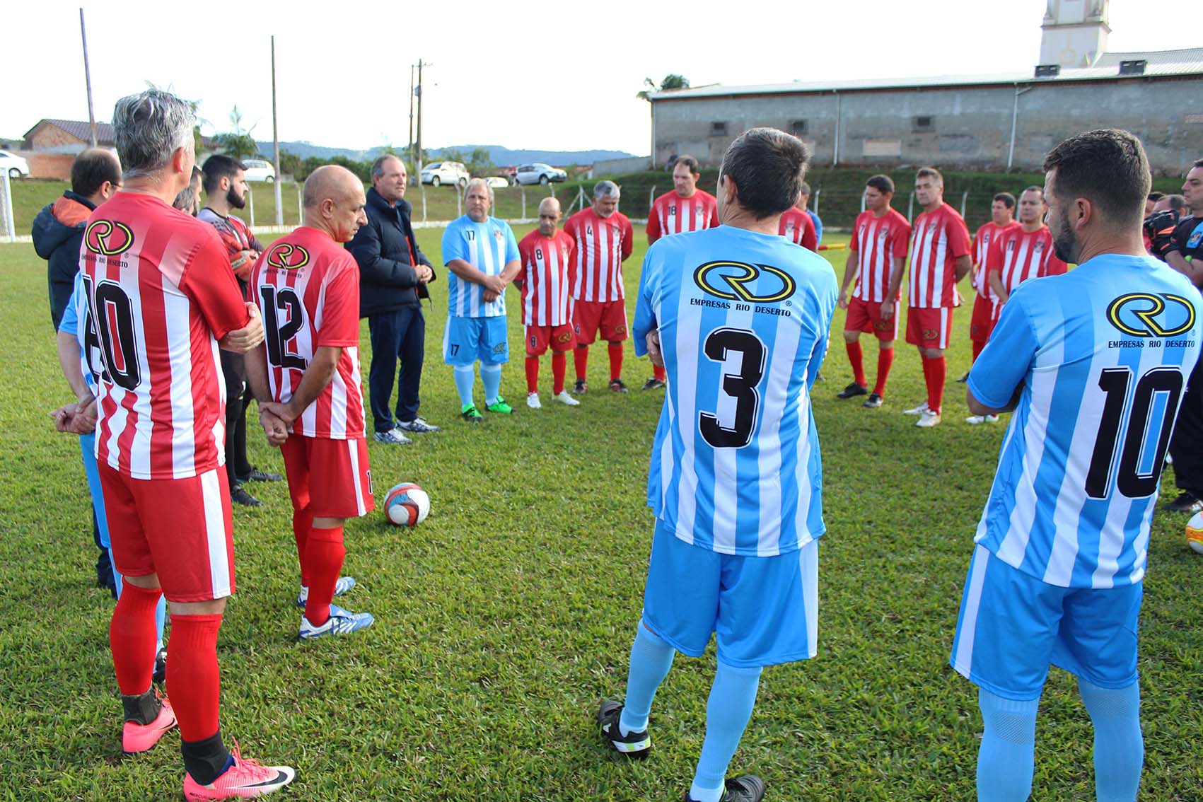 A estreia de dois times de futebol, com uniformes patrocinados pelas Empresas Rio Deserto, movimentou a comunidade de Rio América, em Urussanga (SC), neste domingo, dia 10. Depois de uma partida de futebol, os jogadores e famílias se reuniram para um almoço. As equipes são formadas por jogadores com idade superior a 40 anos, moradores dos bairros Rio América, Santana e centro de Urussanga.