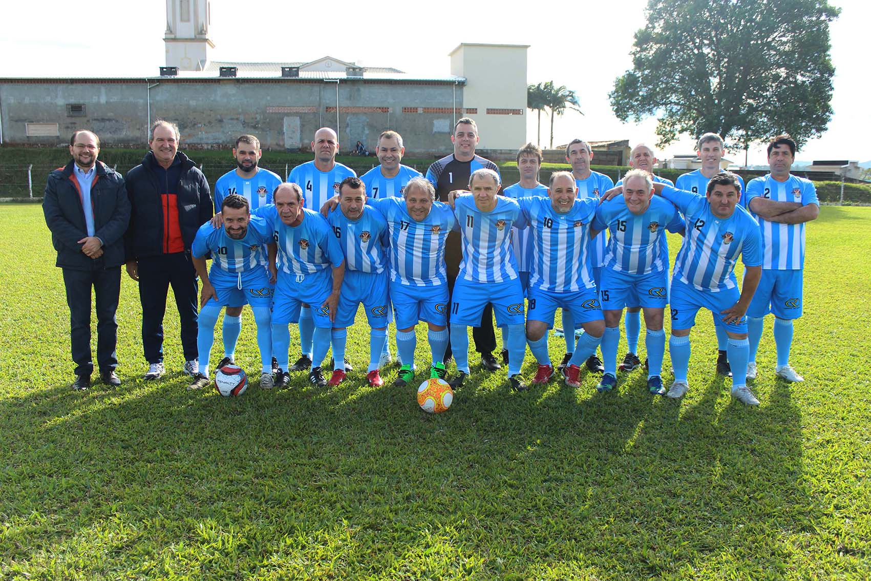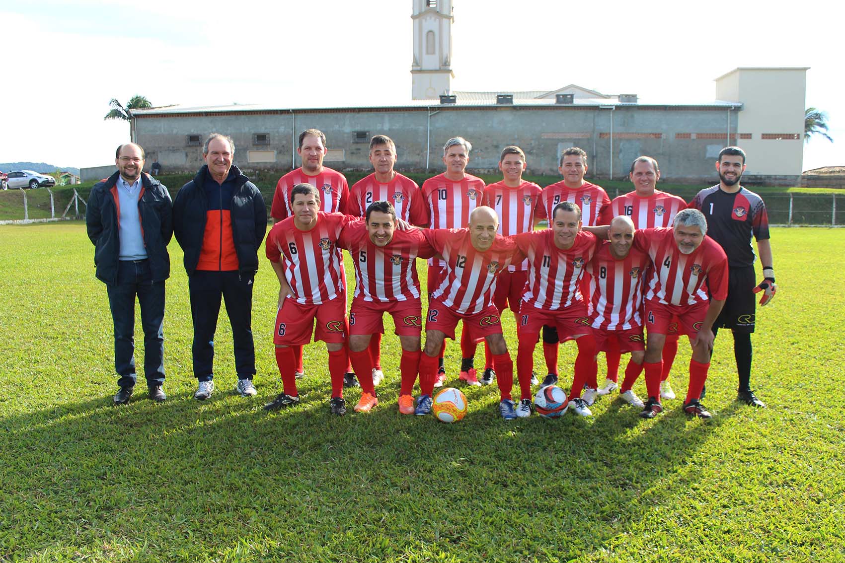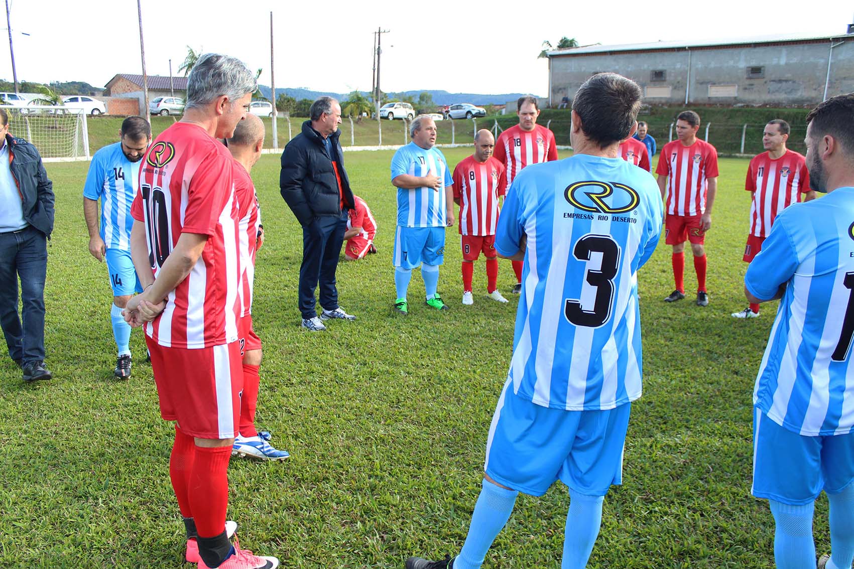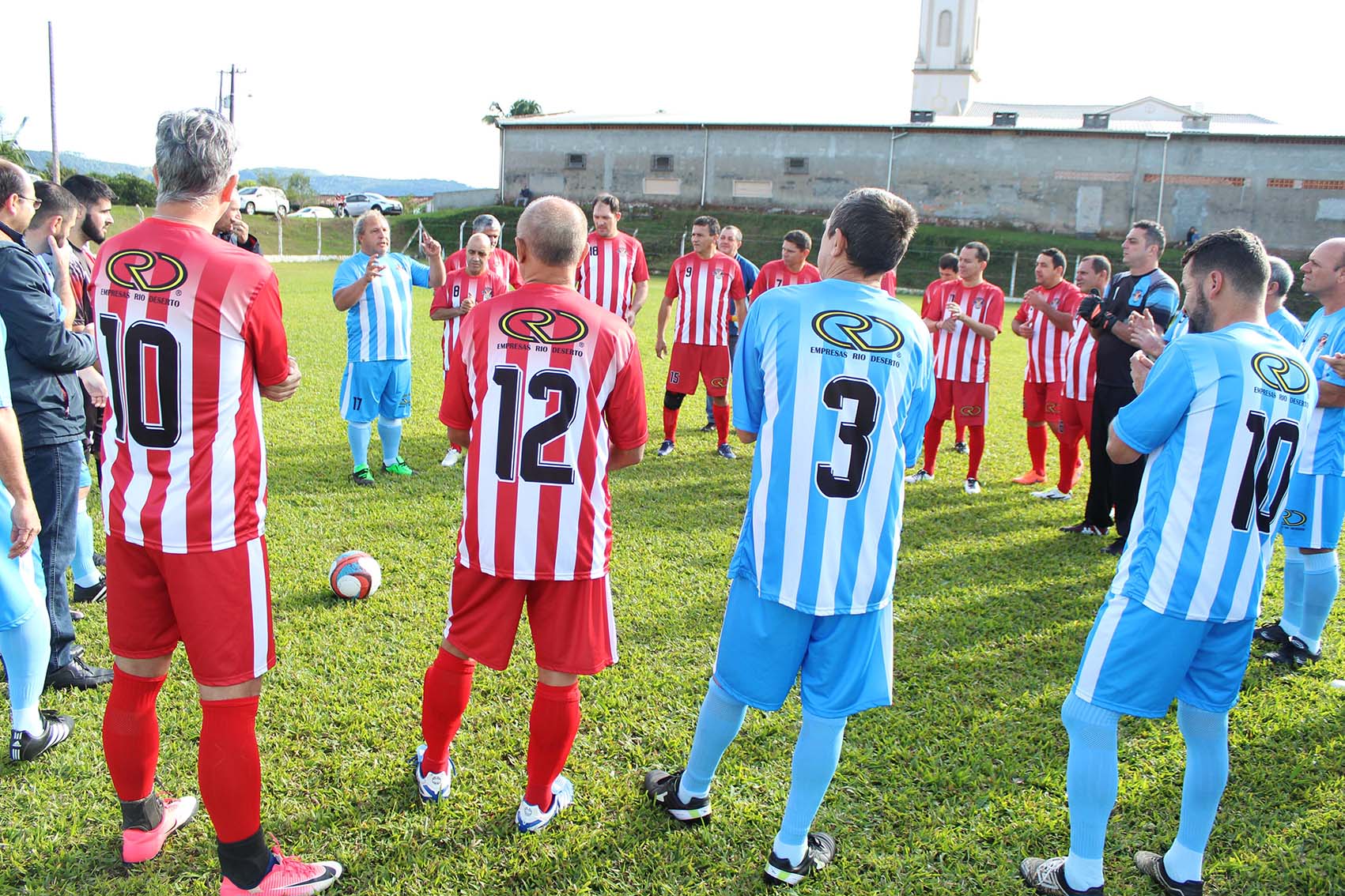 A estreia de dois times de futebol, com uniformes patrocinados pelas Empresas Rio Deserto, movimentou a comunidade de Rio América, em Urussanga (SC), neste domingo, dia 10. Depois de uma partida de futebol, os jogadores e famílias se reuniram para um almoço. As equipes são formadas por jogadores com idade superior a 40 anos, moradores dos bairros Rio América, Santana e centro de Urussanga.