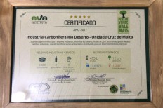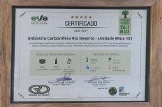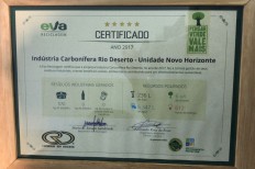 As Unidades de Extração das Empresas Rio Deserto – Mina 101, Mina Cruz de Malta e Mina Novo Horizonte – receberam o certificado por fazer a correta gestão dos resíduos industriais em 2017, criando benefícios sociais, ambientais e contribuindo para o desenvolvimento sustentável. O reconhecimento foi entregue pela empresa EVA Reciclagem neste mês de julho.