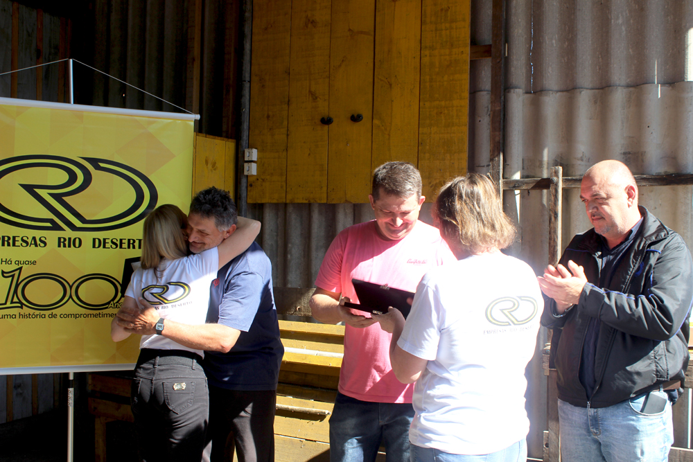 Os colaboradores homenageados aproveitaram o momento para agradecer. “Agradeço a todos. Fico contente por ter cumprido a minha missão nesta empresa e por ver que pessoas novas estão entrando”, afirma Fernando Altanir Patel. Para o Jaisson Maccari, receber a homenagem foi uma alegria. “Foram 18 anos de trabalho na Rio Deserto. Neste tempo, criei a minha família. Só tenho a agradecer por tudo”, salienta.