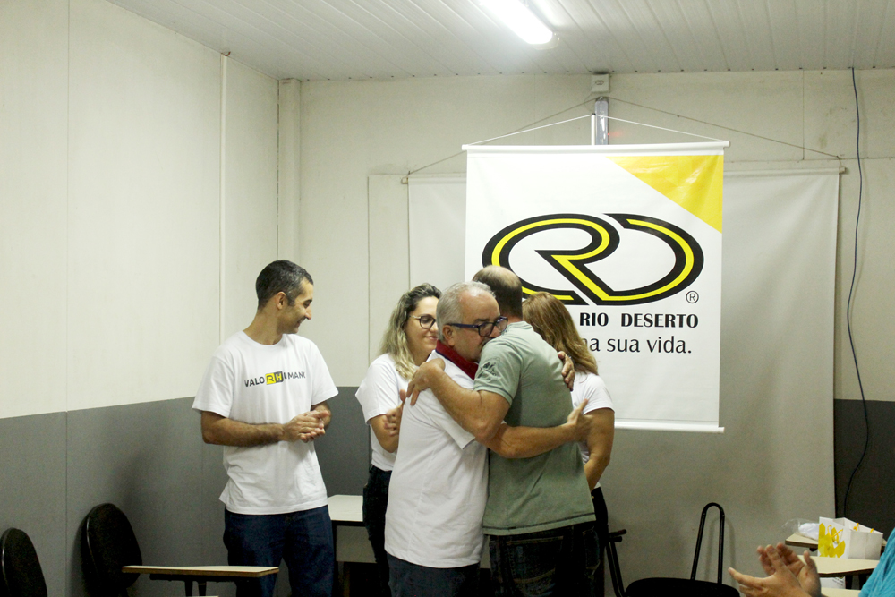 A homenagem entregue aos colaboradores Claudemir Monteiro e Roberto Colonhi, que alcançaram o tempo de aposentadoria, é uma das ações desenvolvidas pela equipe ValoRHumano, integrante do Programa de Inovação e Qualidade – PIQ, das Empresas Rio Deserto. O projeto criado, neste ano de 2017, por um grupo de colaboradores do Escritório Central, leva em conta a valorização das pessoas.