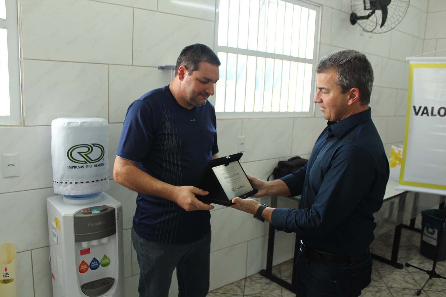 Nas Empresas Rio Deserto, os colaboradores que completam o tempo para a aposentadoria são homenageados com uma placa de reconhecimento. A ação faz parte do Projeto ValoRHumano, coordenado pelo departamento de Recursos Humanos. Além da homenagem aos colaboradores que se aposentam, o projeto também contempla os colaboradores pelo tempo de serviço, em evento anual.