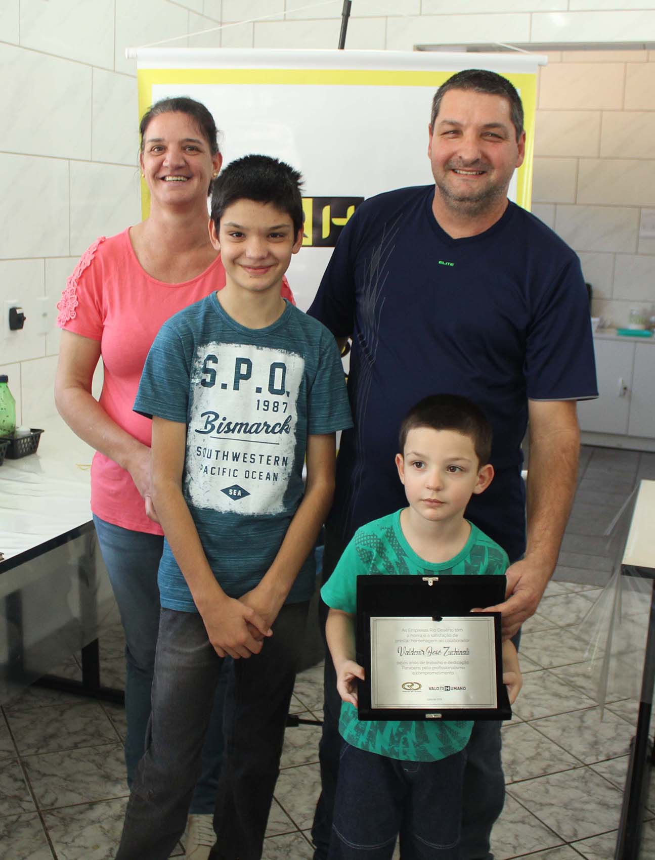 Acompanhado da esposa e dos dois filhos, Zuchinali foi recebido pelos colegas colaboradores, pela analista de recursos humanos das Empresas Rio Deserto, Alice Constantino Joaquim, e pelo gerente da unidade, Pedro Cechinel. “Em todo este tempo, com certeza fez amigos e deixou a sua marca. Agora uma nova fase inicia em sua vida. Aproveite a família, descanse e faça novos planos. Só temos a lhe desejar o melhor”, disse Cechinel.